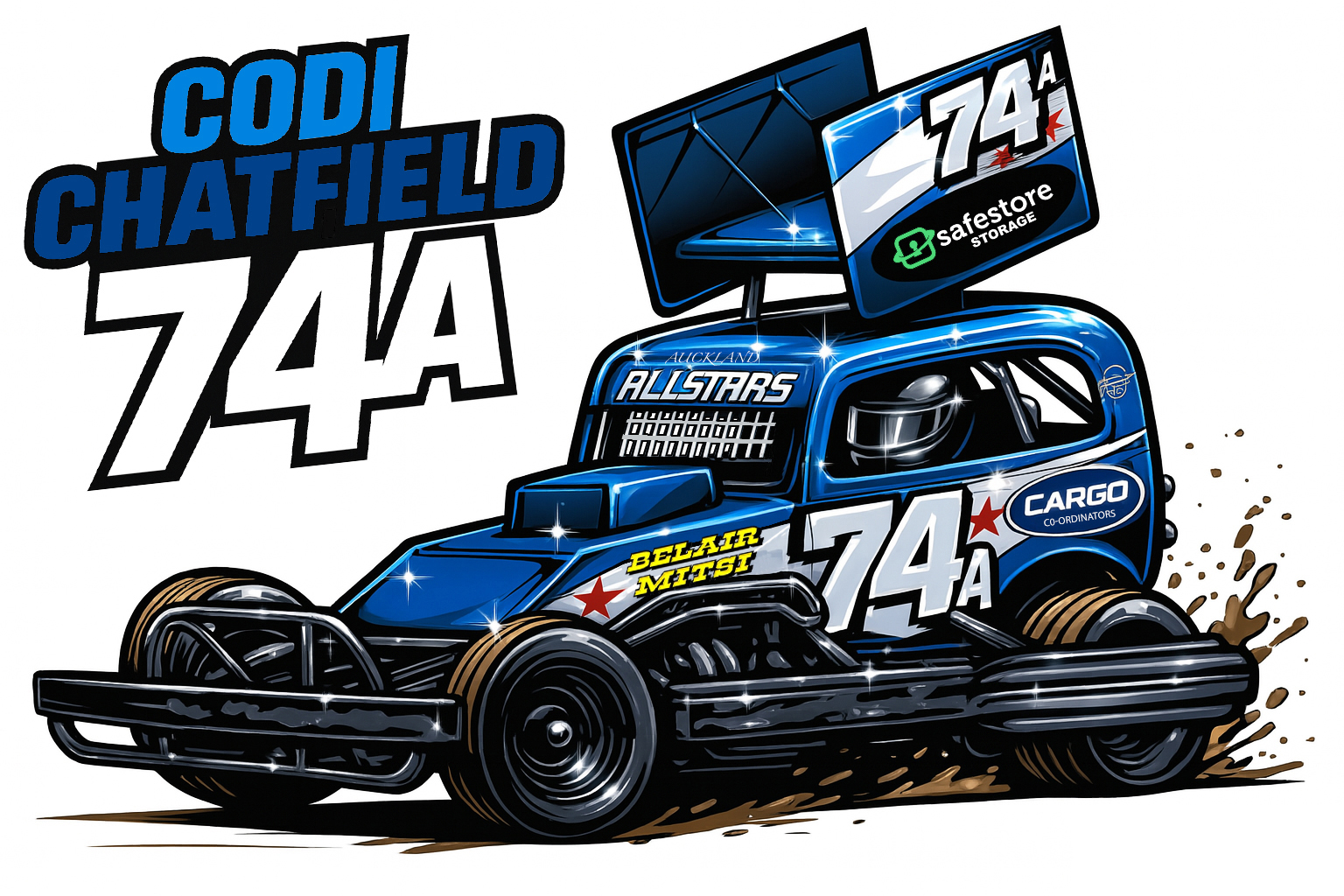 “Transform your race car into a custom cartoon illustration – perfect for turning into eye-catching stickers to hand out to fans on race day!” Or perhaps a poster or t-shirt design? check out our designs in the Speedway Images dropdown menu.